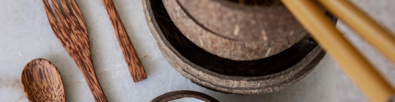 Natural Coconut Bowls + Spoon Twin Set